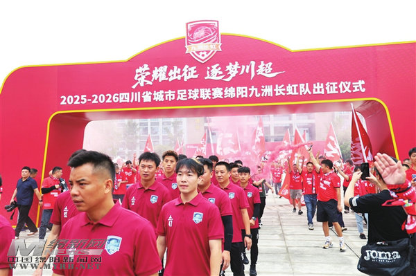 9月26日上午,2025-2026四川省城市足球聯(lián)賽綿陽九洲長虹隊出征儀式在園藝山舉行。[