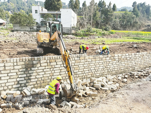 近日,記者在都江堰灌區(qū)三臺縣中新鎮(zhèn)高標(biāo)準(zhǔn)農(nóng)田及農(nóng)業(yè)產(chǎn)業(yè)建設(shè)項目現(xiàn)場看到,新建的2.17公里灌溉渠系已進(jìn)入收尾階段,挖掘機(jī)將磚頭運(yùn)向溝渠,工人正在修筑渠道護(hù)坡、硬化渠底。[