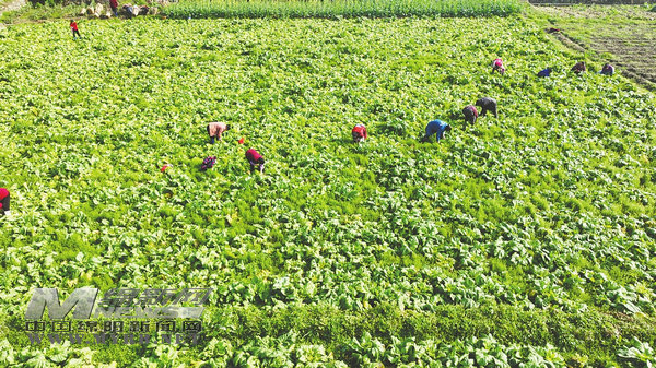 眼下,正是時令蔬菜的收獲期,在北川永昌鎮(zhèn)川主村的田壩里,大片大片的兒菜長勢喜人。采摘、分揀、裝筐……菜農(nóng)們正搶抓時間砍收兒菜,為下一輪春耕春種騰出空間。[