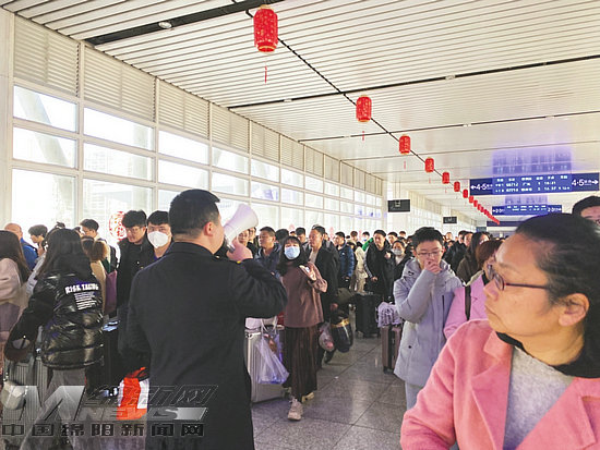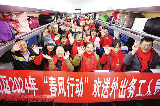 2月22日一大早,綿陽站。150名綿陽務(wù)工人員在參加完簡短熱烈的送行儀式后,在火車站工作人員、志愿者的幫助下,順利坐上了綿陽站至廣州南的D1805次列車。 D1805次列車是2024年綿陽站首列務(wù)工專列,搭乘免費(fèi)返崗務(wù)工人員。臨行前,一只暖水壺、大紅色保暖圍巾、高鐵餐票被送..[
