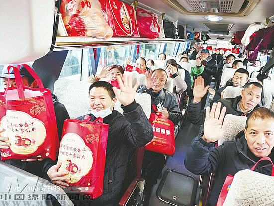 2月21日上午,安州區(qū)汽車客運(yùn)站廣場(chǎng)上,106名務(wù)工人員乘坐兩輛“點(diǎn)對(duì)點(diǎn)”返崗專車奔赴江蘇省,開啟新一年的奮斗之旅?!耙郧岸际菙D大巴,現(xiàn)在政府包車送我們,還有大禮包,真是暖到心坎里了?!奔磳⑶巴K務(wù)工的鄭貴軍夫婦倆難掩激動(dòng)之情。[