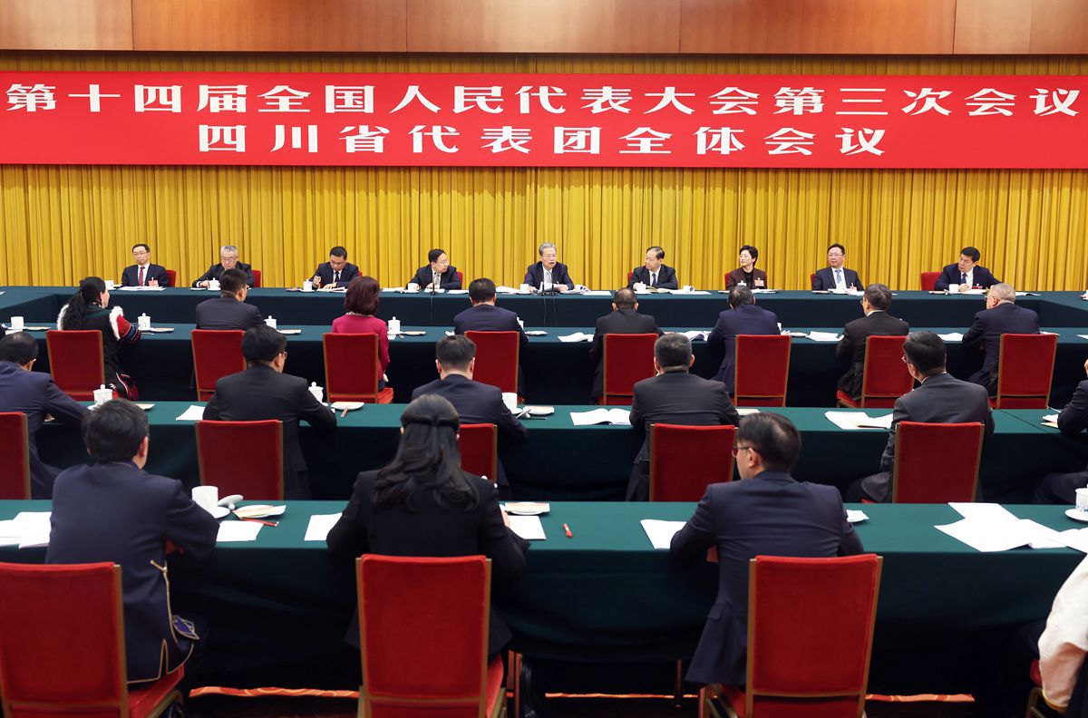 3月5日下午,出席十四屆全國人大三次會議的四川代表團舉行全體會議,集中審議政府工作報告。[