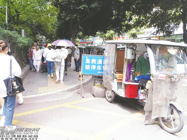 近日,涪江觀察《三輪車占道攬客,小攤擺上人行道!醫(yī)院外生命通道遭遇“腸梗阻”》一文,報道了綿陽市中心醫(yī)院急診科前三輪車占道攬客、人行道上小商小販擺攤賣貨,給生命通道添堵一事。 [