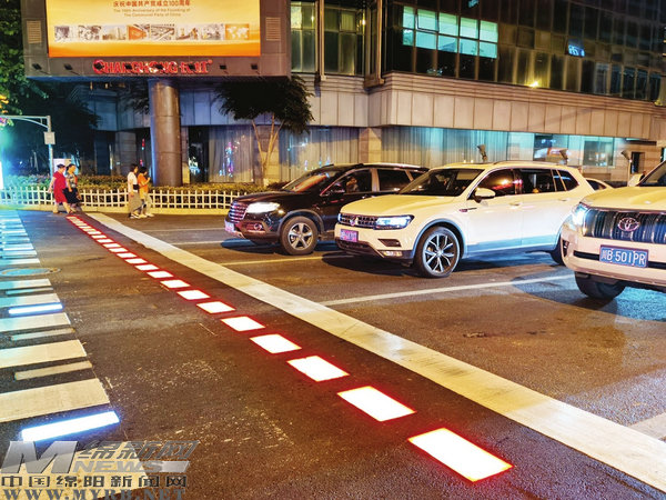 在高新區(qū)綿興東路與火炬西街交匯的十字路口上,斑馬線的一周,一圈“LED燈”不斷交換紅光和綠光,吸引不少過往市民。9月8日,記者了解到,這些LED燈是由綿陽交發(fā)集團投資建設(shè)的綿陽科技城綿興路智慧斑馬線試點項目,已于近日投用。 [