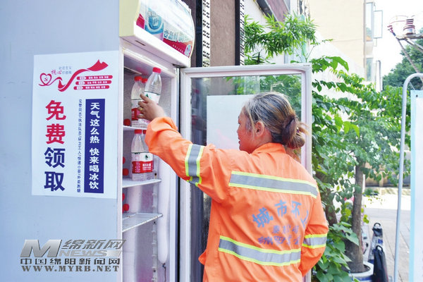 “愛心冰箱”再現(xiàn)綿陽街頭 戶外工作者免費取飲