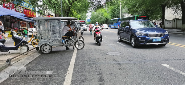 8月24日,在涪城區(qū)躍進路北段虹高市場,很多客運三輪車將車橫停在市場出口處的非機動車道上,給過往行人出行、非機動車的行駛造成不便。 [
