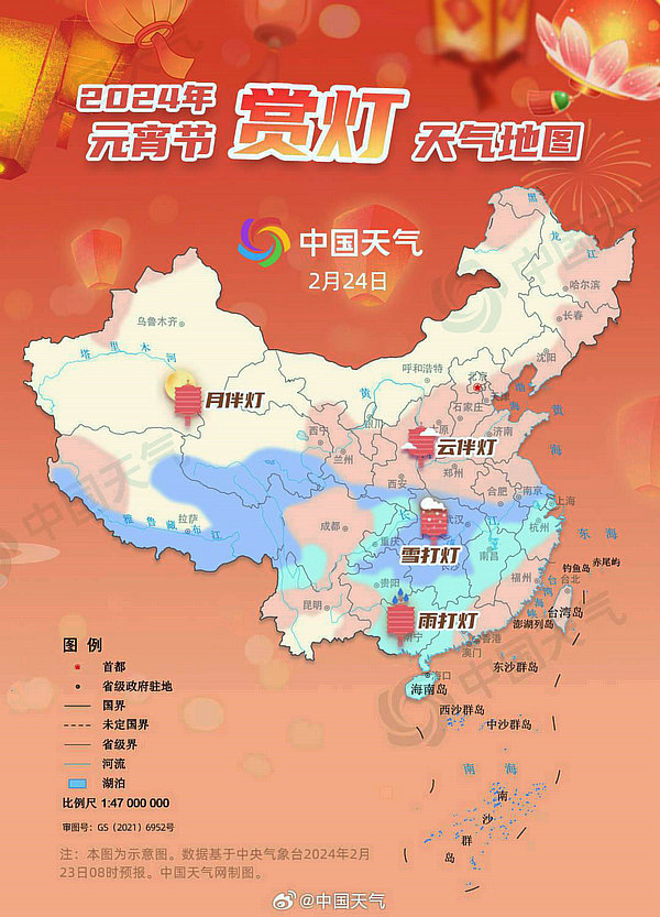 2024元宵節(jié)賞燈天氣地圖來了 看你家是“雪打燈”還是“月伴燈”