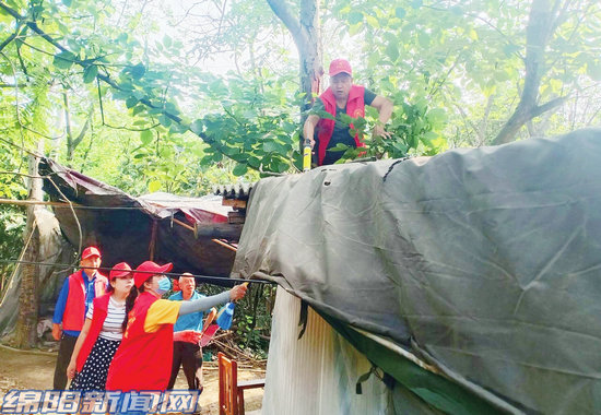 志愿者修繕?lè)课?、疏通排水溝讓?dú)居老人安全度汛