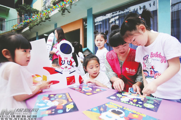 在“中國航天日”即將到來之際,4月20日,涪城區(qū)石塘街道御營社區(qū)復(fù)興少年宮的巾幗志愿者走進轄區(qū)幼兒園,開展了中國航天日——“綿陽星座”點燃社區(qū)兒童航天夢科普課堂。通過學(xué)習航天知識、動手制作太空主題手工貼畫等方式,點燃孩子們學(xué)科學(xué)、愛航天的熱情,激發(fā)孩子們探夢.. [
