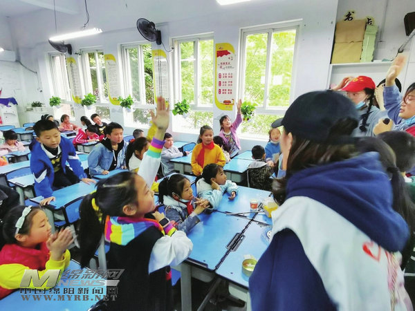 西南財經(jīng)大學天府學院雷鋒站的大學生志愿者在游仙區(qū)置信小學開展了“走進生活,走進科學”主題志愿服務活動,為小朋友們講解科學知識、開展科學小游戲。 [