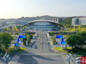 科博會(huì)會(huì)場(chǎng)外景(劉軍攝) □四川日?qǐng)?bào)全媒體記者祖明遠(yuǎn) 11月22日—26日,第十一屆中國(guó)(綿陽(yáng))科技城國(guó)際科技博覽會(huì)將在綿陽(yáng)市舉辦。11月15日,綿陽(yáng)國(guó)際會(huì)展中心內(nèi),帶有第十一屆中國(guó)(綿陽(yáng))科技城國(guó)際科技博覽會(huì)LOGO和中英文字樣的藍(lán)色主.. [
