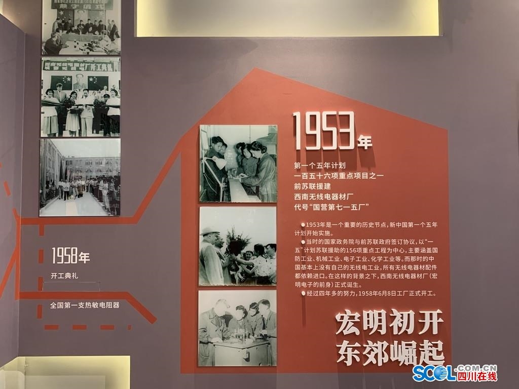 1953年,作為國家一五時期由蘇聯(lián)援建的156個重點項目之一的西南無線電器材廠,選址成都東郊,開工建設。五年后,建成投產(chǎn),部署代號“國營第七一五廠”,郵政代碼“成都市第82號信箱”。“西南無線電器材廠,就是宏明電子的前身?,F(xiàn)在我們所在的地點,是當時專門為援華蘇聯(lián)專家修建的宿舍樓。”紀歡說,自此開始,“82信箱”成為成都幾代人共同的記憶。