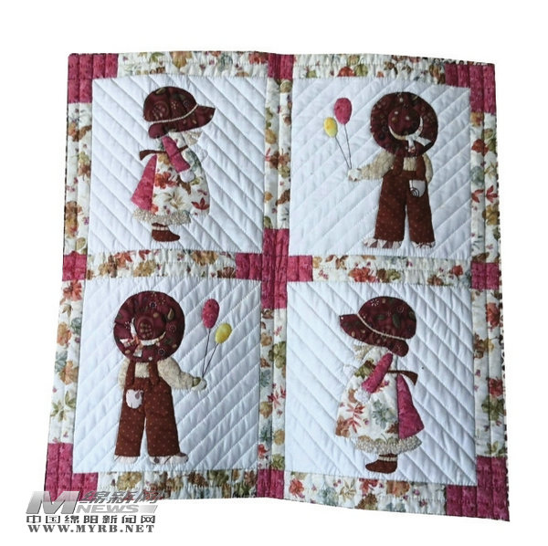 2014年,在孩子出生后,為了讓閑暇的時間更有意義,顧玥瑜開始了解國內外關于拼布的資料,還多次到河南培訓學習。此間,她四處收集綿陽本地拼布的資料,拜綿陽折花拼布傳承人石建群為師,學習綿陽折花拼布技藝,整理、歸納工藝特點,并運用到自己的創(chuàng)作中。