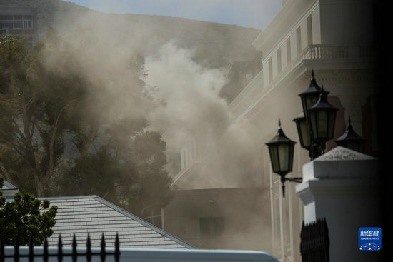 1月2日,南非開(kāi)普敦的議會(huì)建筑冒起濃煙。新華社發(fā)(弗朗西斯科·斯卡巴 攝)