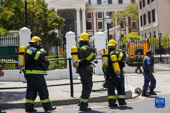 1月2日,消防員準(zhǔn)備進(jìn)入南非開(kāi)普敦的議會(huì)。新華社發(fā)(弗朗西斯科·斯卡巴 攝)