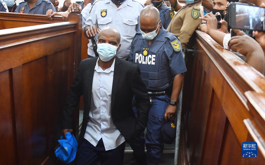 1月11日,南非議會(huì)縱火嫌疑人贊迪雷·馬菲(前)在開普敦地方法院出庭后離開。新華社發(fā)(哈比索·姆卡貝拉攝)