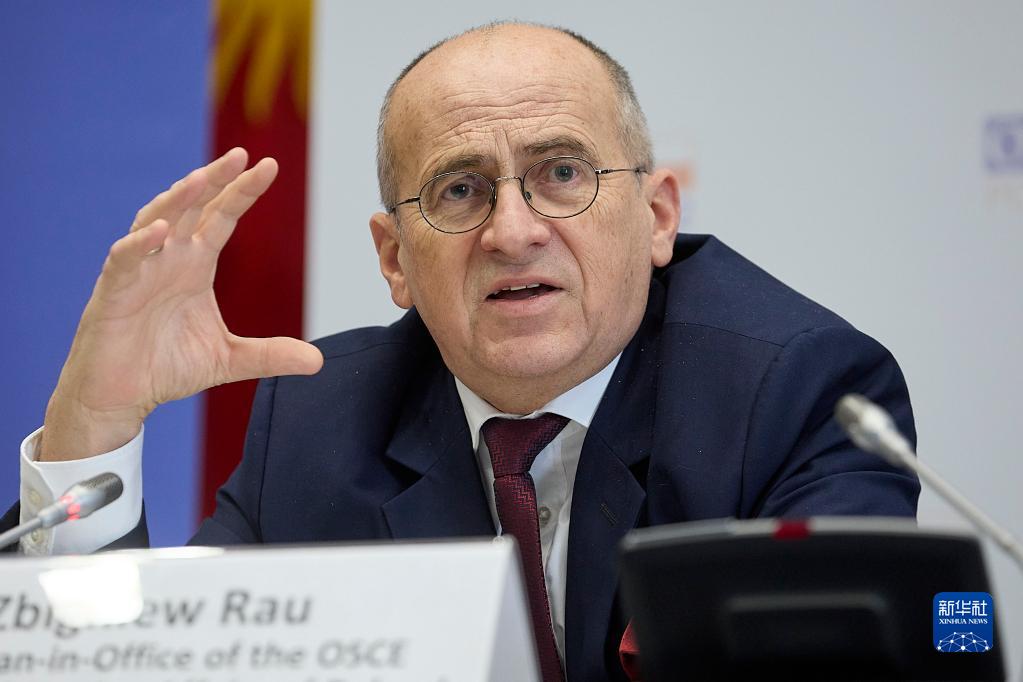1月13日,歐安組織新任輪值主席國波蘭外交部長拉烏在奧地利首都維也納出席記者會。新華社發(fā)(喬治斯·施耐德攝)