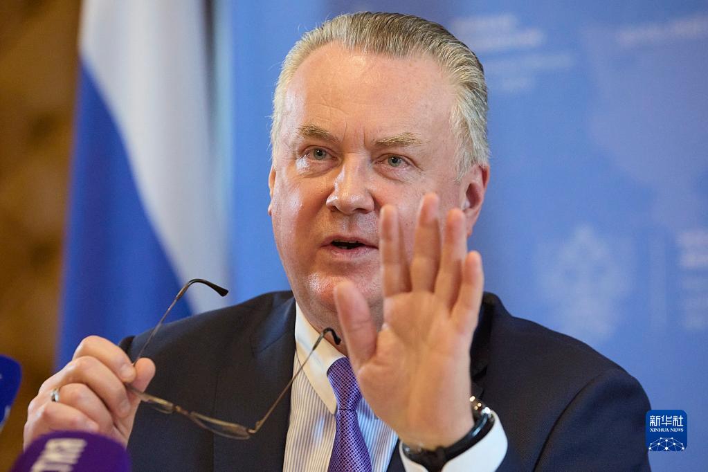 1月13日,俄羅斯常駐歐安組織代表盧卡舍維奇在奧地利首都維也納出席記者會。新華社發(fā)(喬治斯·施耐德攝)