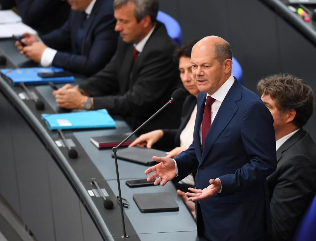 7月6日,德國總理朔爾茨(前)在位于柏林的德國聯(lián)邦議會接受例行問詢。新華社記者任鵬飛攝