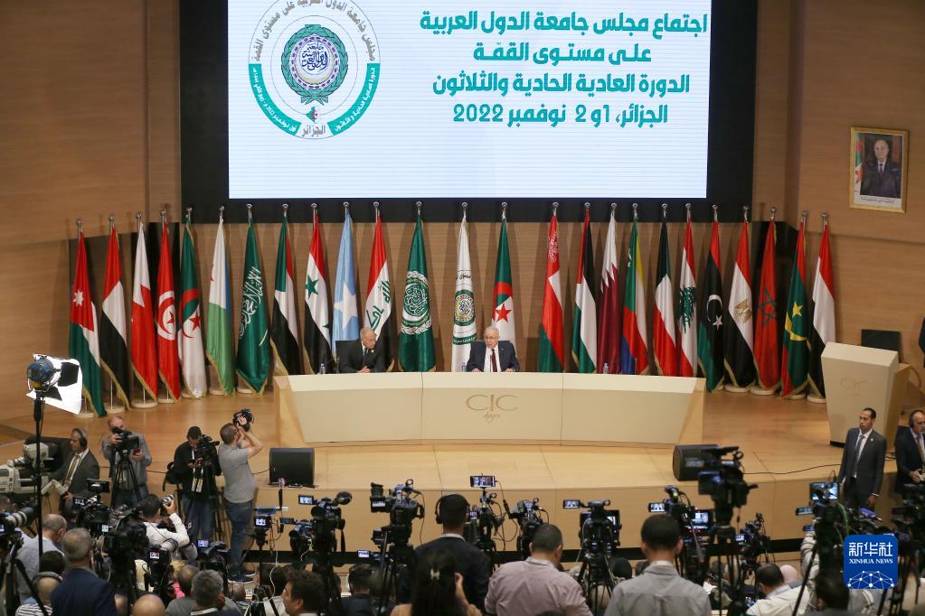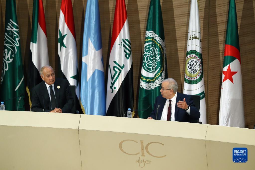 11月2日,在阿爾及利亞阿爾及爾,阿爾及利亞外長拉馬拉(后右)與阿盟秘書長蓋特(后左)共同出席記者會(huì)。新華社發(fā)