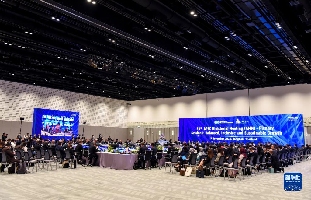 這是11月17日在泰國曼谷拍攝的亞太經(jīng)合組織(APEC)第三十三屆部長級會議現(xiàn)場。新華社記者 郭磊 攝