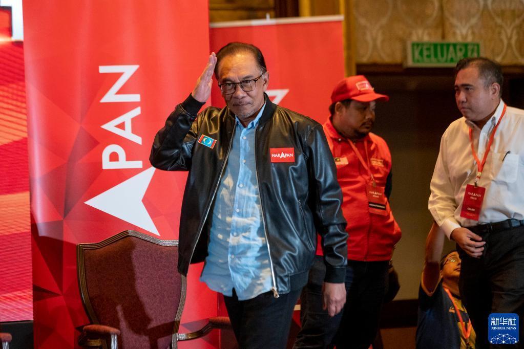 11月20日,在馬來西亞雪蘭莪州的梳邦再也,希望聯(lián)盟領(lǐng)袖安瓦爾(前)出席新聞發(fā)布會(huì)。新華社發(fā)(張紋綜攝)