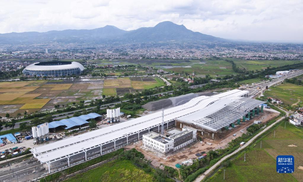 這是2022年10月27日在印度尼西亞萬隆拍攝的建設(shè)中的雅萬高鐵德卡魯爾車站(無人機(jī)照片)。新華社記者 徐欽 攝