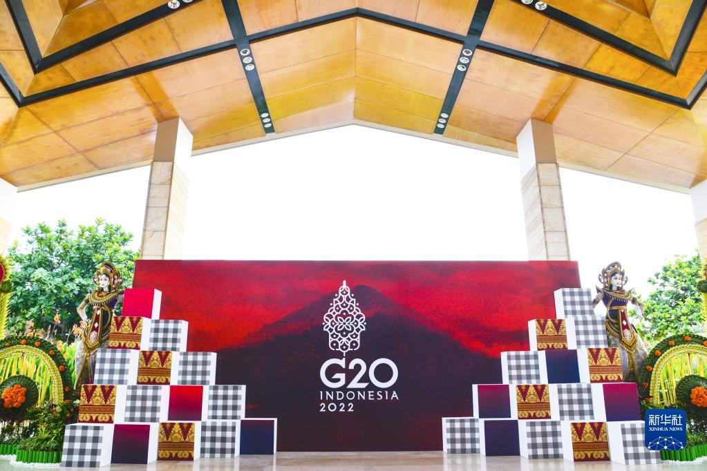 這是2022年11月11日在印度尼西亞巴厘島拍攝的二十國集團(tuán)領(lǐng)導(dǎo)人第十七次峰會會場外的標(biāo)識。新華社記者 徐欽 攝