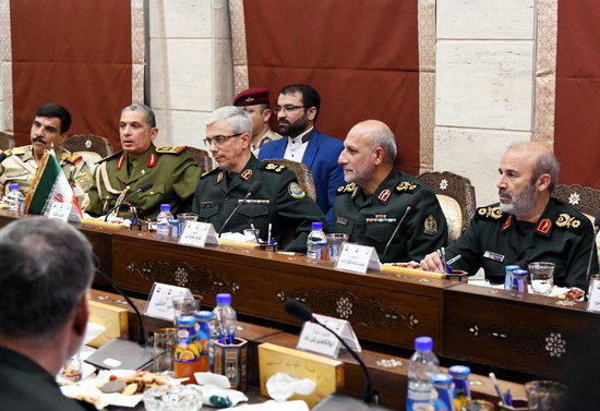 2019年3月18日,敘利亞首都大馬士革,伊朗武裝部隊(duì)總參謀長(zhǎng)穆罕默德·巴蓋里(左三)出席敘利亞、伊朗、伊拉克三國(guó)軍方高級(jí)官員會(huì)議。(新華社發(fā) 阿馬爾攝)