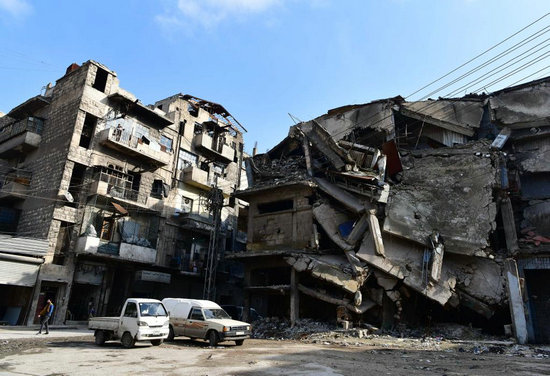 這是3月7日在敘利亞阿勒頗卡塔爾基工業(yè)區(qū)拍攝的被戰(zhàn)火損毀的房屋。(新華社發(fā),阿馬爾·薩法爾賈拉尼攝)