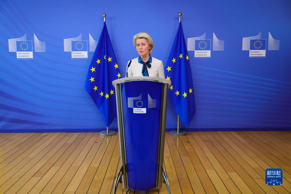 5月18日,歐盟委員會主席馮德萊恩在比利時(shí)布魯塞爾的歐盟委員會總部發(fā)言。