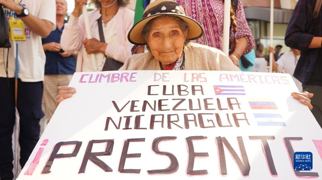 當(dāng)日,美洲峰會(huì)在洛杉磯會(huì)議中心落幕,民眾舉行游行抗議美國(guó)的外交政策。