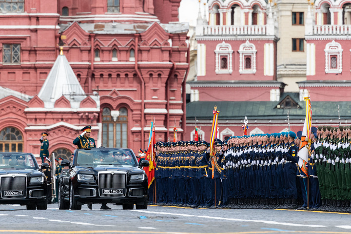 5月9日,在俄羅斯首都莫斯科,俄羅斯國防部長紹伊古檢閱部隊(duì)。俄羅斯9日在莫斯科紅場(chǎng)舉行閱兵式,紀(jì)念衛(wèi)國戰(zhàn)爭勝利77周年。新華社記者白雪騏攝