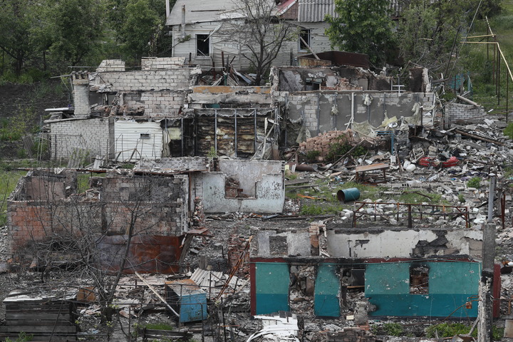 這是5月26日在盧甘斯克波帕斯納亞拍攝的被損壞的建筑。新華社發(fā)(維克托攝)