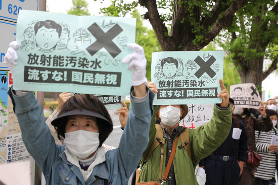 來自東京、千葉和福島等地的民眾當日舉行抗議活動。參與活動的民眾表示,原子能規(guī)制委員會的決定關系福島未來、關系海洋環(huán)境,但如此重要的決定竟然沒有充分告知日本民眾就倉促決定,十分不負責任。還有民眾表示,堅決反對將核污染水排放入海,日本不能再污染海洋、污染地球了。