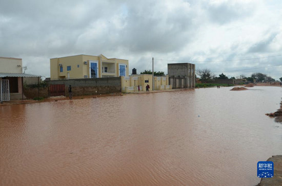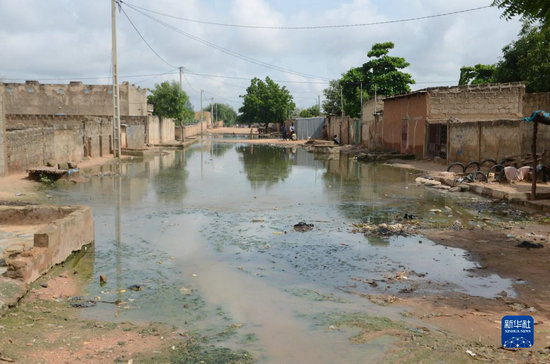 這是尼日爾南部馬拉迪地區(qū)馬拉迪市一處積水的道路(9月2日攝)。新華社發(fā)