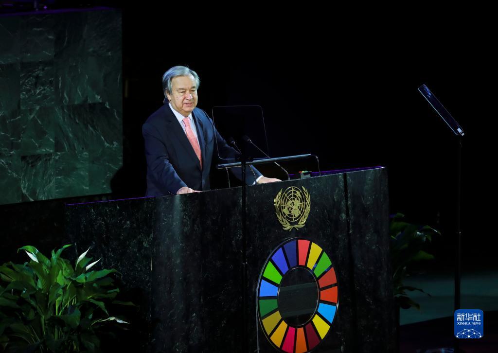 9月19日,在位于紐約的聯(lián)合國(guó)總部,聯(lián)合國(guó)秘書(shū)長(zhǎng)古特雷斯在第三次“可持續(xù)發(fā)展目標(biāo)時(shí)刻”高級(jí)別活動(dòng)上致辭。新華社記者 王迎 攝