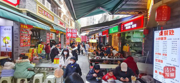 綿州記憶美食街人頭攢動,美食飄香。文化廣場上,綿陽迎春美食節(jié)展出各地風(fēng)味小吃,到處呈現(xiàn)出濃濃的年味。