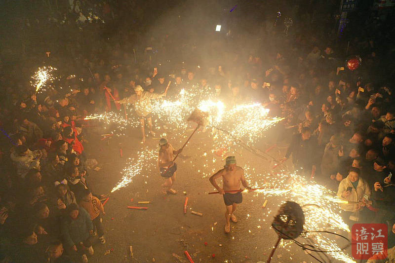 據(jù)非物質(zhì)文化遺產(chǎn)傳承人蔣斌介紹,舞火龍時,舞龍人要脫去龍衣,觀賞者可以手持煙花噴向龍身與舞龍者。正是因為火龍、舞者、觀眾三位一體的極度密集的交織與碰撞,燒火龍的氣氛才會如此熱烈奔放。