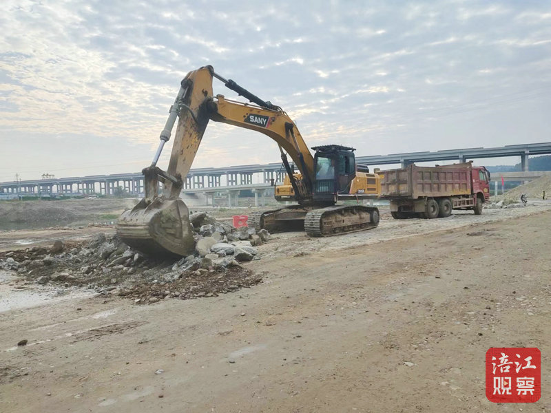在麻柳河段,記者看到,挖掘機正在開挖齒槽、在河口處污水處理廠地段,工人們正在澆注混凝土擋墻。施工現(xiàn)場負責(zé)人陸珍權(quán)正在進行安全施工巡查。