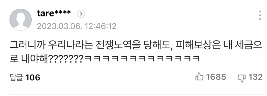 有網(wǎng)友質(zhì)疑道:“我們國家曾深受戰(zhàn)爭之苦,如今對受害者的賠償金卻要用我們自己納的稅來支付?”