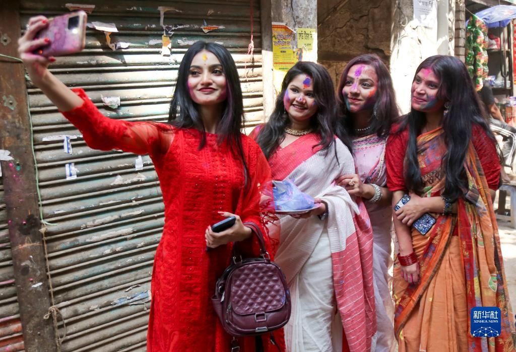 3月7日,人們?cè)诿霞永瓏?guó)達(dá)卡參加灑紅節(jié)慶祝活動(dòng)。