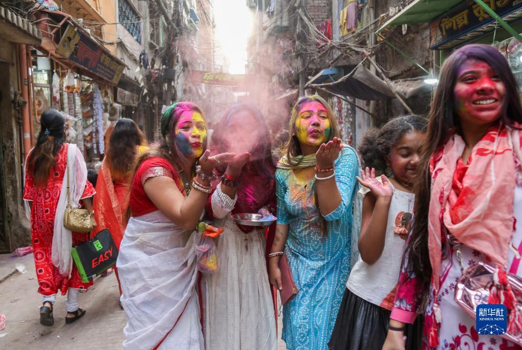 灑紅節(jié)也叫胡里節(jié),人們?cè)诠?jié)日期間互相涂抹顏料,迎接春天的到來(lái)。