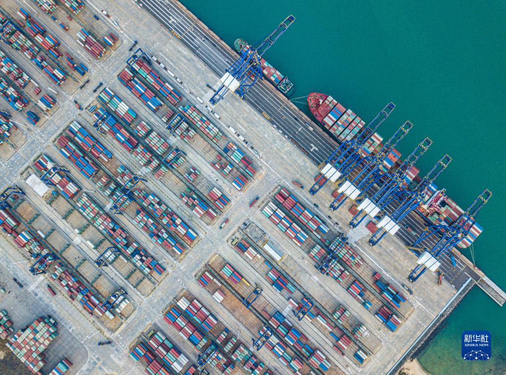 在海南環(huán)新英灣地區(qū)拍攝的洋浦國際集裝箱碼頭(無人機(jī)照片,2月28日)。新華社記者 蒲曉旭 攝