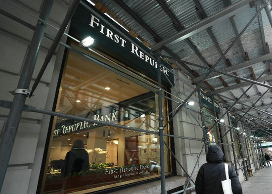 3月13日,行人從美國紐約第一共和銀行一家營業(yè)部外走過。(新華社記者張墨成 攝)