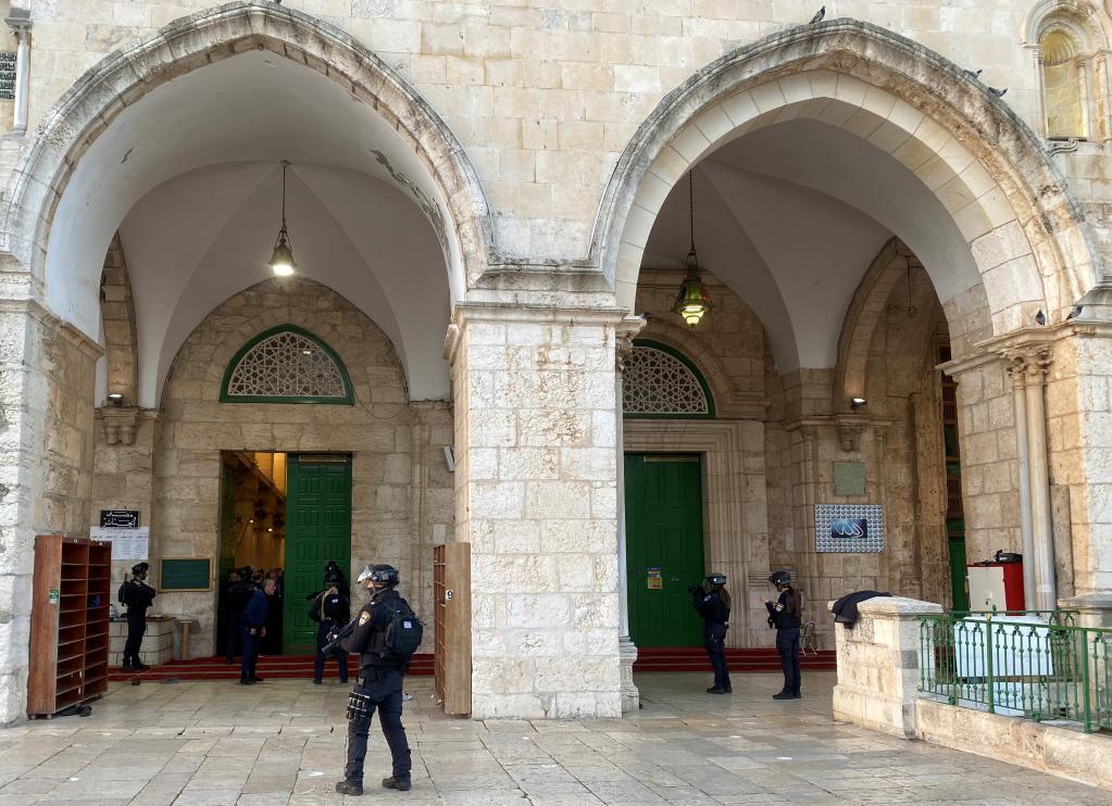 4月5日,以色列警察在耶路撒冷老城阿克薩清真寺執(zhí)勤。新華社發(fā)(穆阿邁爾·阿瓦德攝)