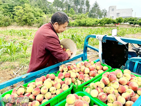 每年這個時節(jié),不僅有很多游客過來體驗采摘的樂趣,客商也源源不斷來桃園收購,鮮桃一筐筐拉走。