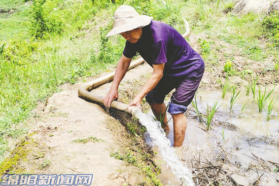下泵機、拉電線、順水帶……清澈的河水通過水帶,流進了干涸的稻田。“秧苗栽上去20多天都沒下雨,我們到處找水源,哪個塘有水,就在哪個塘里抽,基本保證稻田濕度。”胡葉春說。