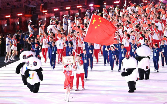 隨著大運會主火炬塔被點燃,整個開幕式被推向高潮。