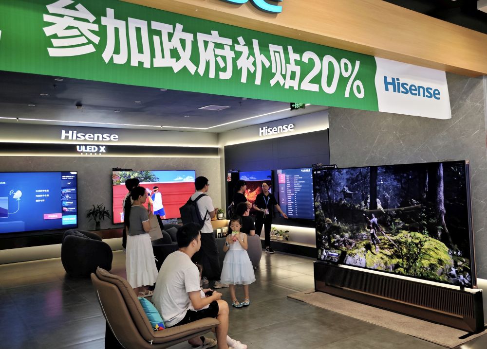 在成都,以舊換新補(bǔ)貼政策吸引消費(fèi)者選購家電。新華社記者陳健 攝